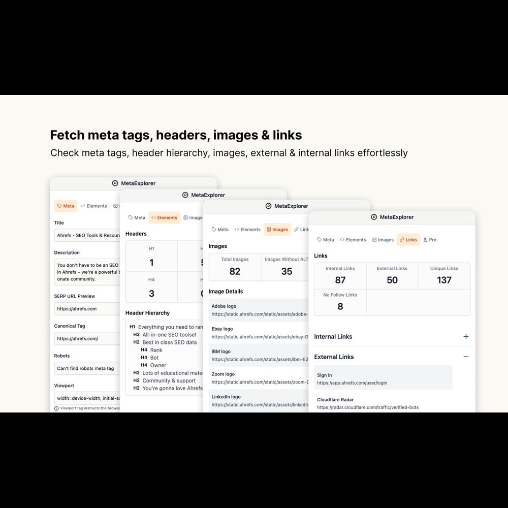 Support the development of MetaExplorer chrome extension. MetaExplorer is a chrome extension that lets you find SEO meta on any page with ease. You can find the extension here -> https://chromewebstore.google.com/detail/meta-explorer/dggmapjanngfjjakfgeoegfmgpmcamfh
